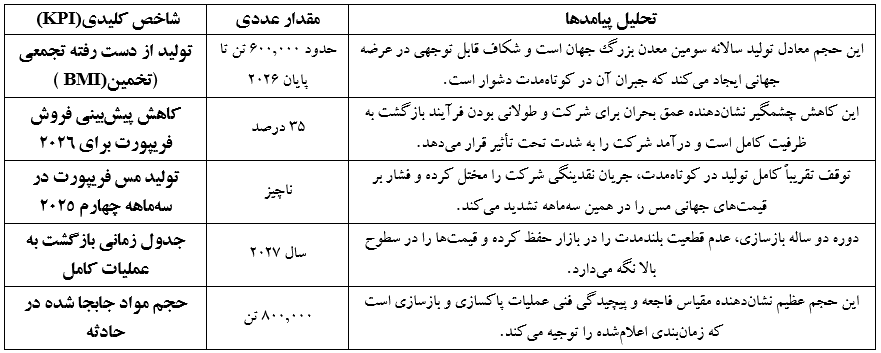 تأثیر بر فریپورت: شرکت با کاهش ۳۵ درصدی فروش در سال ۲۰۲۶ و توقف تولید در کوتاهمدت، با بحران مالی و عملیاتی جدی روبروست.