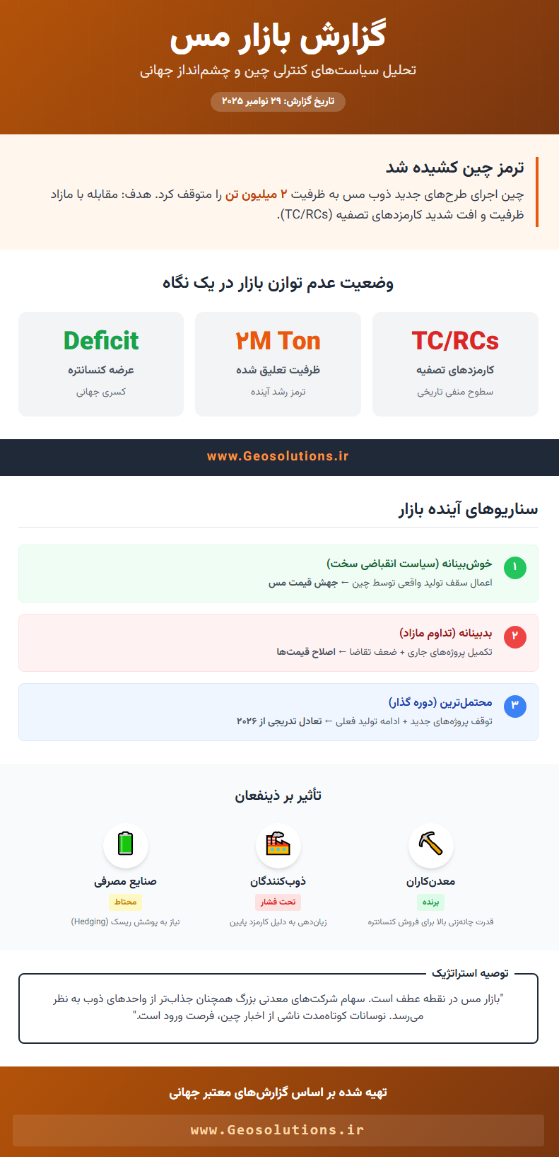 کارمزدهای پرداختی برای فرآوری مس، که به عنوان هزینههای تصفیه و پالایش یا TCs/RCs شناخته میشوند، به سطوح منفی تاریخی سقوط کردهاند. در واکنش به تنگنایی که کارخانههای ذوب چینی در جریان مذاکرات سالانه برای تامین کنسانتره مس با آن روبرو هستند، چین روز چهارشنبه اعلام کرد که کار بر روی دو میلیون تن ظرفیت جدید ذوب برنامهریزی شده را به حالت تعلیق درآورده است.