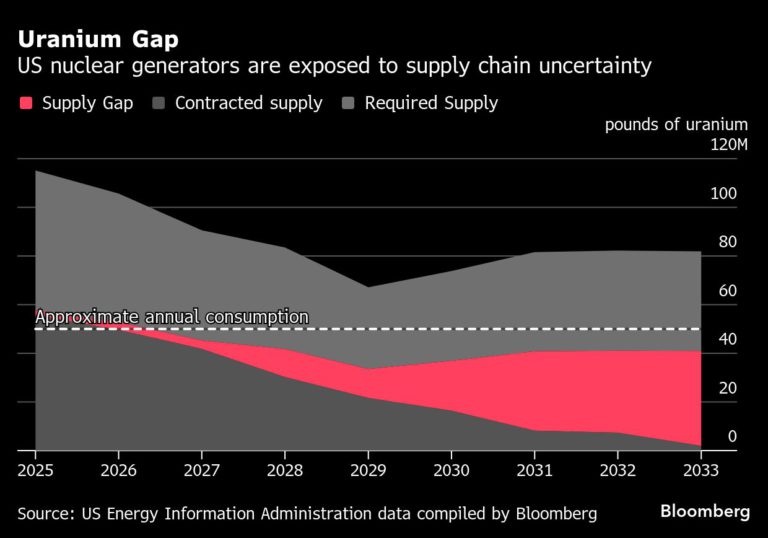 انتظار میرود شکاف عرضه اورانیوم در دهه آینده افزایش یابد و به مجموع ۱۸۴ میلیون پوند برسد که معادل بیش از سه سال مصرف است. گزارش EIA نشان میدهد که در غیاب قراردادهای تأمین بلندمدت، ممکن است شرکتهای خدمات عمومی بیشتری نیاز به انعقاد قراردادهای کوتاهمدتتر برای فعال نگه داشتن راکتورها پیدا کنند.