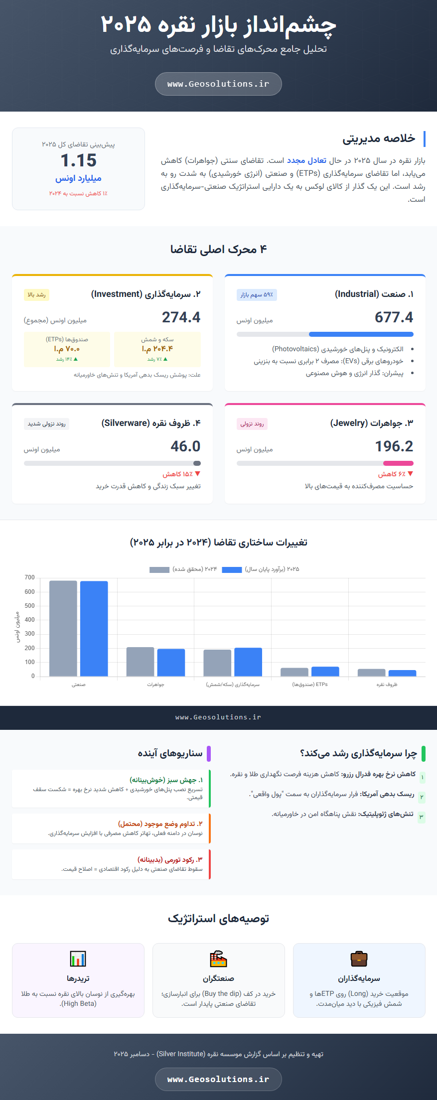 بر اساس آخرین بررسی جهانی نقره که توسط موسسه نقره در آوریل ۲۰۲۵ منتشر شد، تقاضای جهانی نقره فیزیکی در سال ۲۰۲۴ به ۱.۱۶ میلیارد اونس رسید که اندکی کمتر از رکورد ۱.۲۸ میلیارد اونسی ثبت شده در سال ۲۰۲۲ بود.